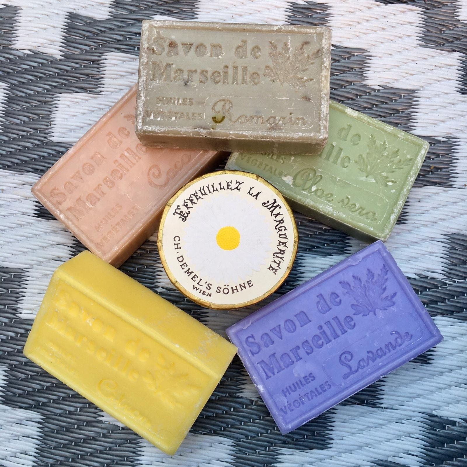 Feine vegane Seifen direkt bezogen aus einer kleinen Seifenmanufaktur in der Nähe von Marseille.